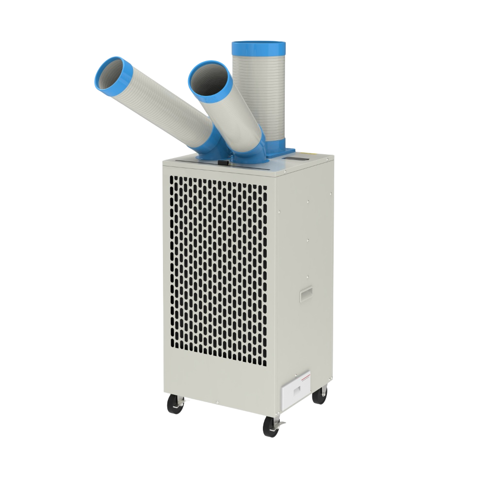 The Industrial Spot Cooler series is designed to meet the demanding cooling needs of industrial environments. These dual-hose commercial AC units are built with an all-copper wire compressor and hydrophilic inner-thread copper tube evaporative condensers to ensure stable and efficient cooling performance. Featuring eco-friendly R32/R410A refrigerant, low-noise operation, and a highly portable design, these models are the ideal solution for workshops, warehouses, server rooms, and production lines, both indoors and outdoors.
